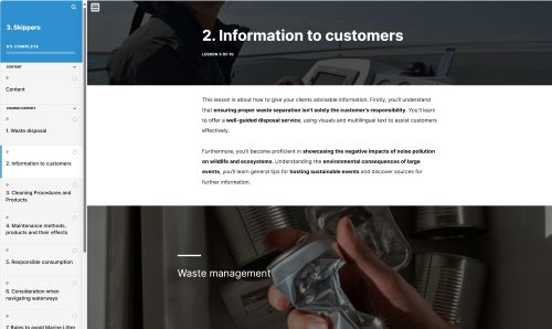 A free online course from the EU to certify an "Environmental Officer in Nautical Tourism" that fills skills gaps of the different sub-sectors within the Nautical Tourism sector.